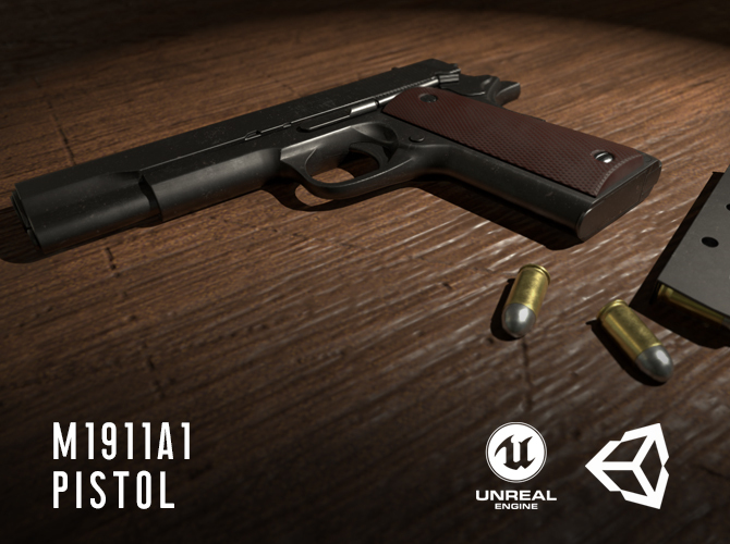 A realistic and high detailed model of the M1911A1 Pistol. Ready to animated and separated into parts with correct pivot points.